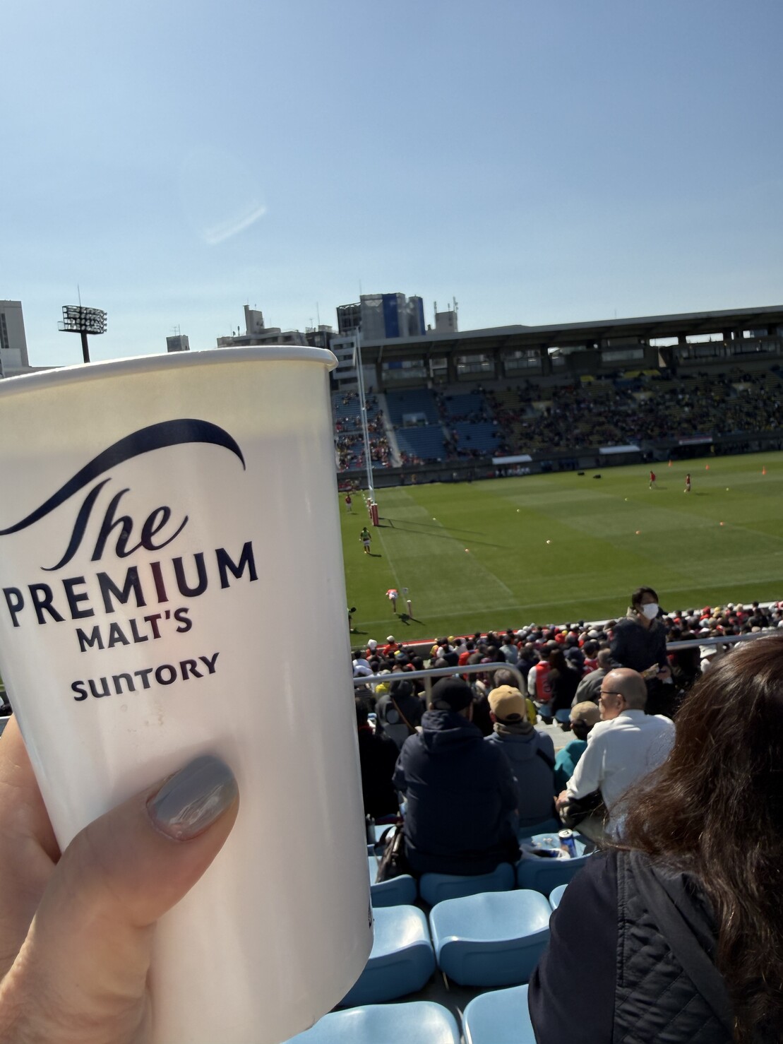 神宮の隣でスコアボール眺めながらビール飲んでる🏉